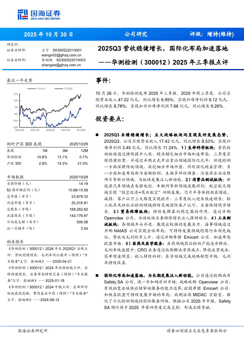 华测检测:国海证券-华测检测-300012-2025年三季报点评:2025Q3营收稳健增长,国际化布局加速落地-251030