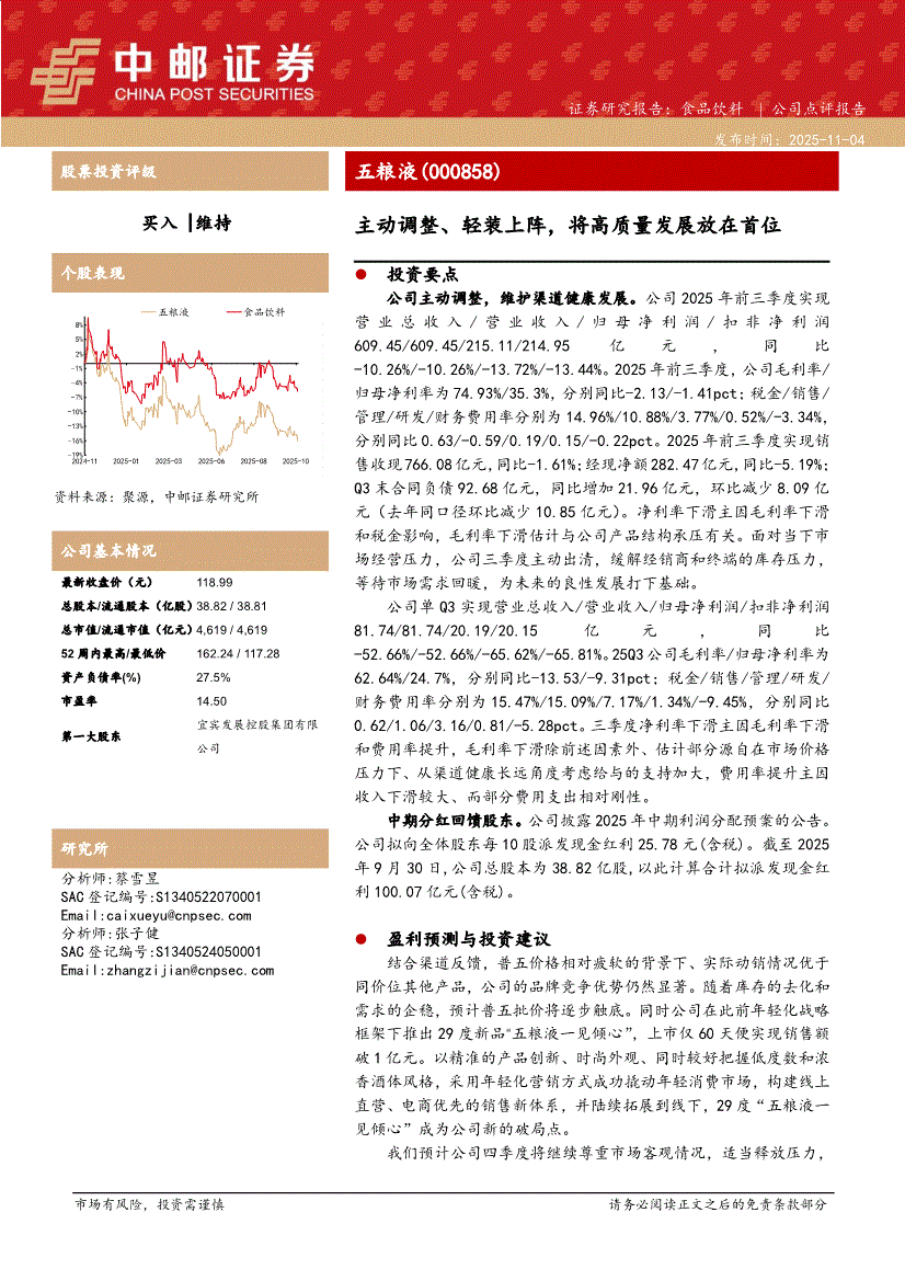 五粮液:中邮证券-五粮液-000858-主动调整、轻装上阵,将高质量发展放在首位-251104