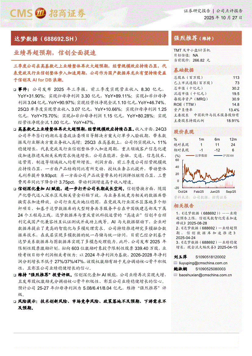 达梦数据:招商证券-达梦数据-688692-业绩再超预期,信创全面提速-251027