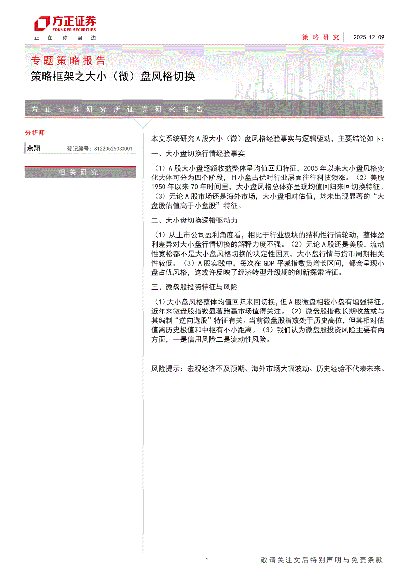方正证券-专题策略报告:策略框架之大小(微)盘风格切换-251209