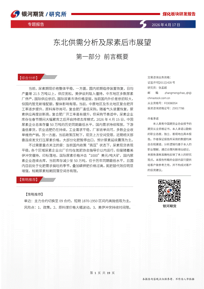 银河期货-专题报告:东北供需分析及尿素后市展望-260417