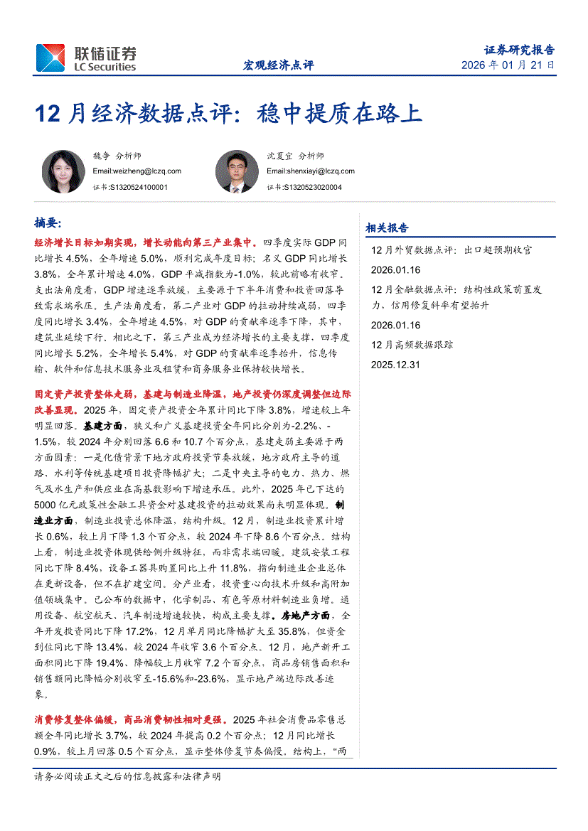 联储证券-12月经济数据点评:稳中提质在路上-260121