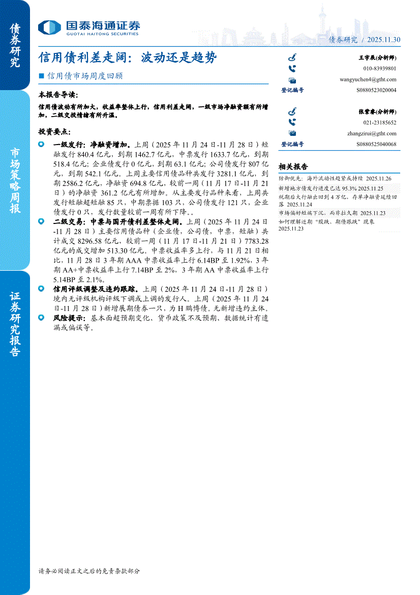 国泰海通证券-信用债市场周度回顾:信用债利差走阔,波动还是趋势-251130