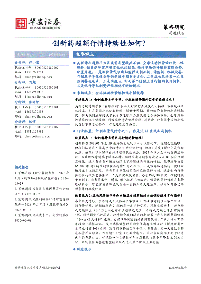 华安证券-创新药超额行情持续性如何?-260406