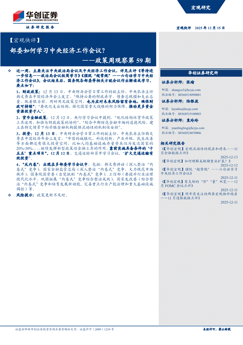 华创证券-【宏观快评】政策周观察第59期:部委如何学习中央经济工作会议?-251215