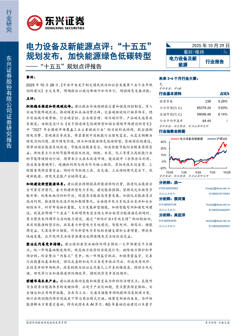电力设备及新能源行业:东兴证券-电力设备及新能源行业点评:“十五五”规划发布,加快能源绿色低碳转型——“十五五”规划点评报告-251029