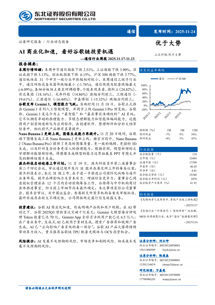 通信行业:东北证券-通信行业周报:AI商业化加速,看好谷歌链投资机遇-251124