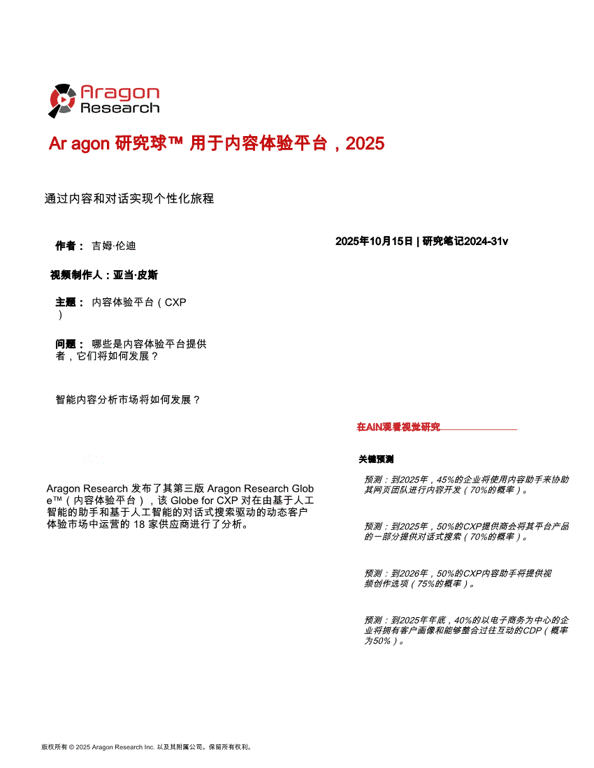 人工智能行业:Aragon Research-人工智能行业2025年内容体验平台全球研究报告:通过内容和对话实现个性化旅程(英译中)-251015