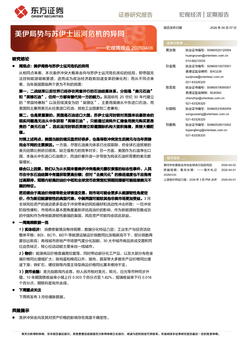 东方证券-宏观周观点:美伊局势与苏伊士运河危机的异同-260407