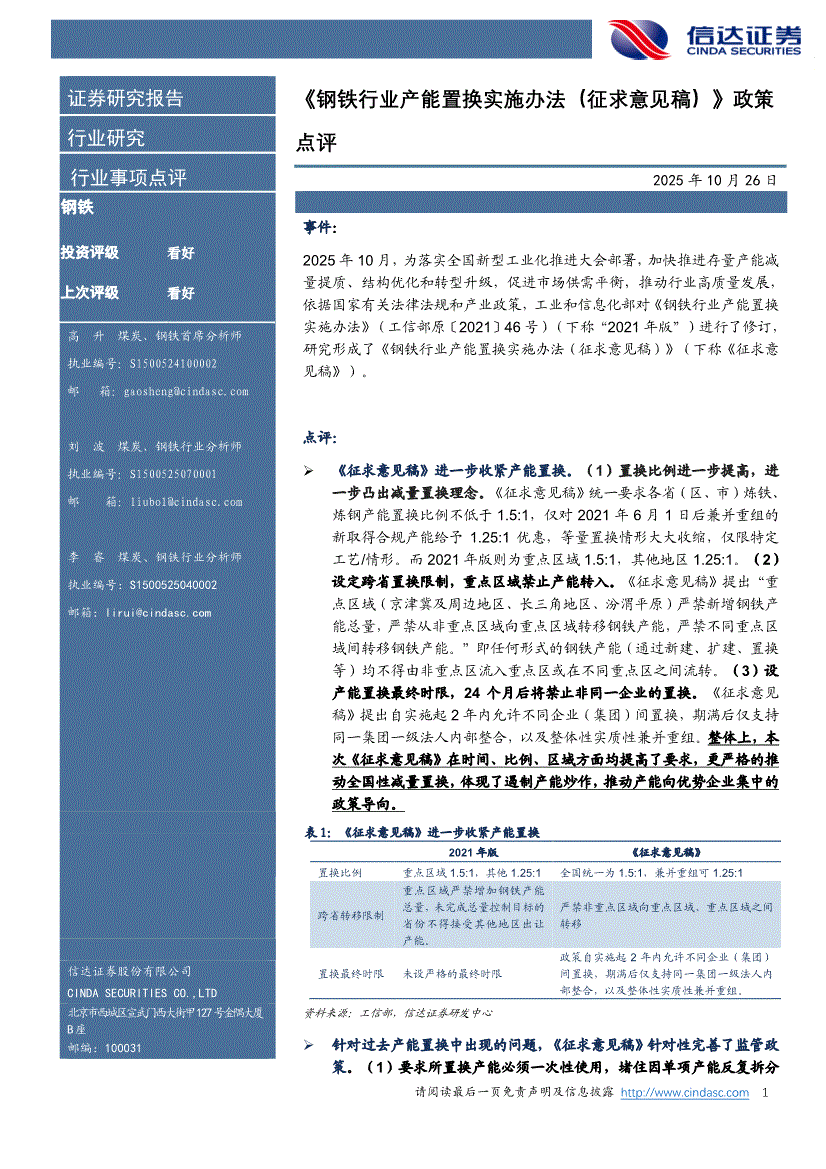 钢铁行业:信达证券-钢铁行业:《钢铁行业产能置换实施办法(征求意见稿)》政策点评-251026