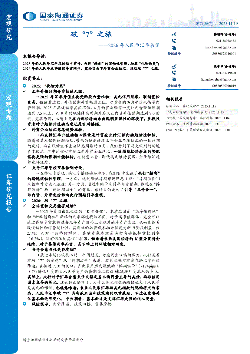 国泰海通证券-2026年人民币汇率展望:破“7”之旅-251119