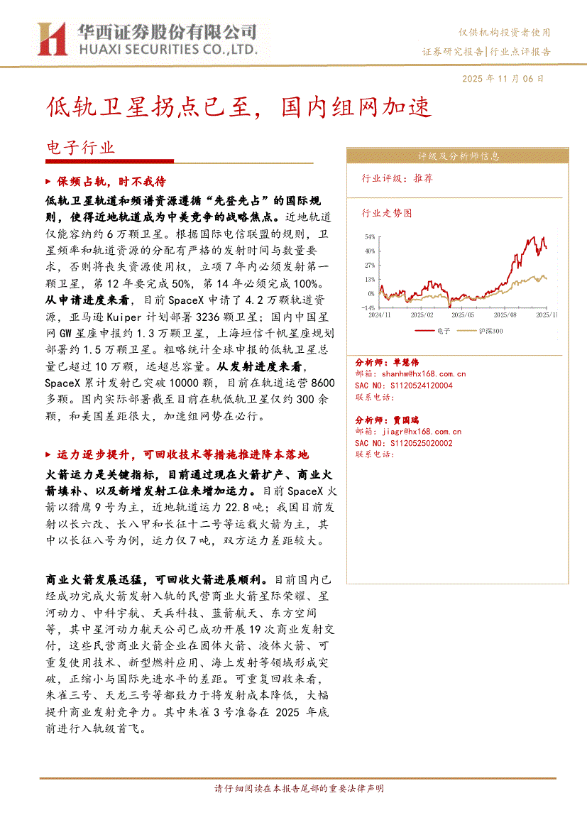 电子行业:华西证券-电子行业:低轨卫星拐点已至,国内组网加速-251106
