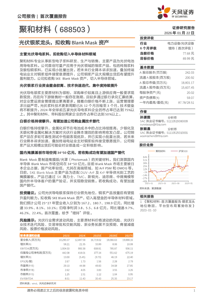 聚和材料:天风证券-聚和材料-688503-光伏银浆龙头,拟收购Blank Mask资产-260122