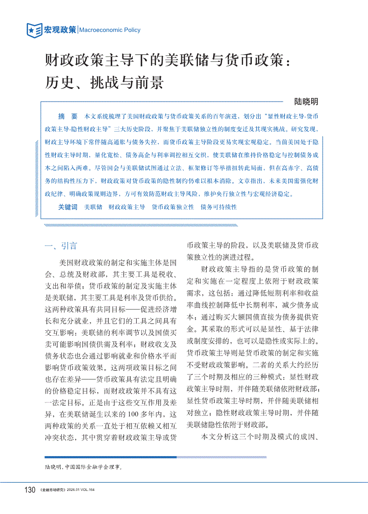 金融市场研究-财政政策主导下的美联储与货币政策:历史、挑战与前景-260122