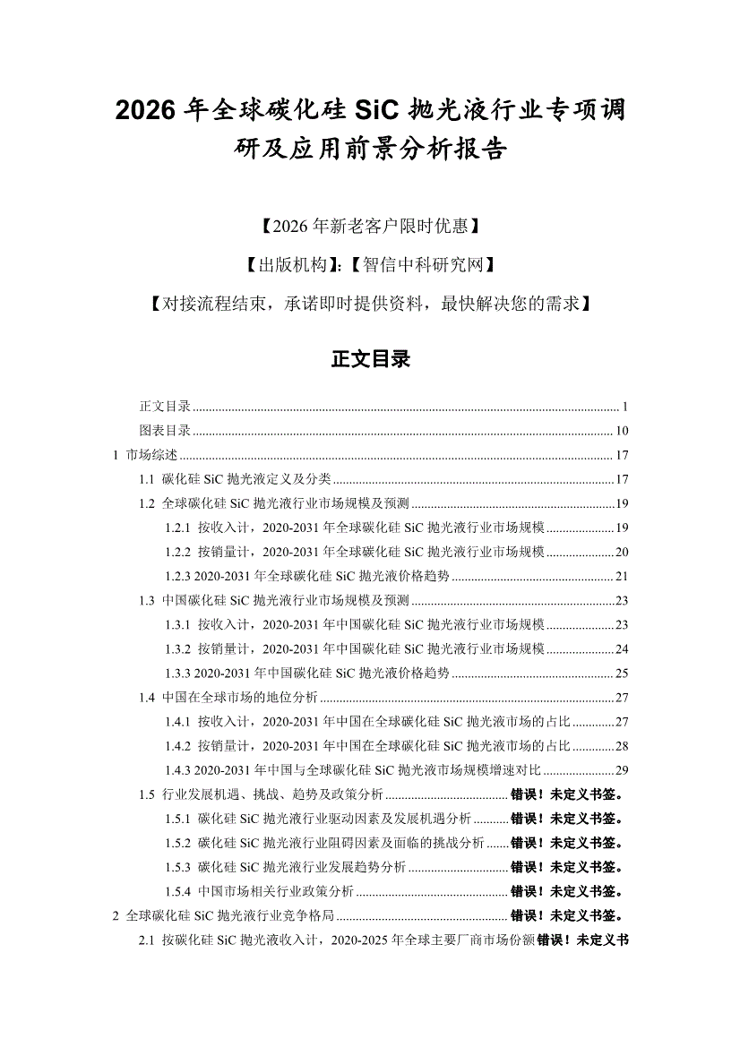 抛光液行业:智信中科研究网-2026年全球碳化硅SiC抛光液行业专项调研及应用前景分析报告-260401