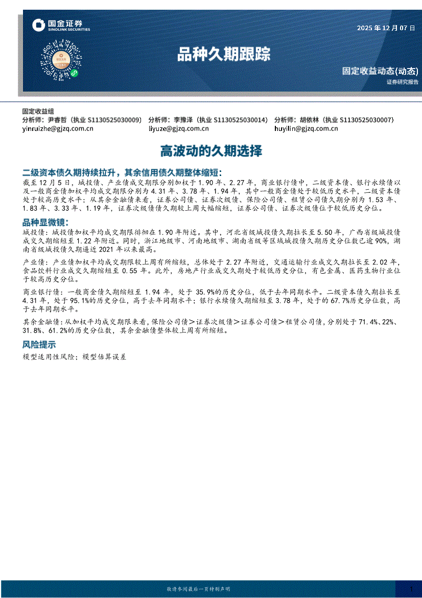 国金证券-品种久期跟踪:高波动的久期选择-251207