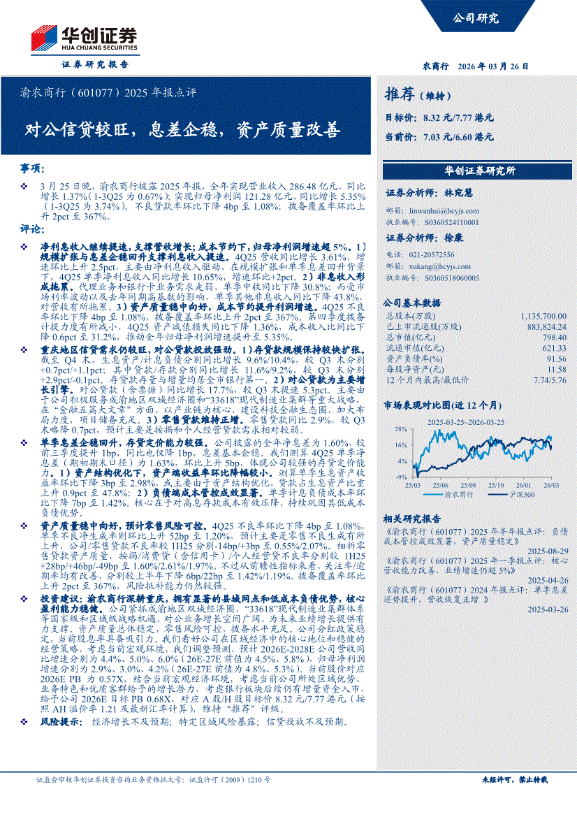 渝农商行:华创证券-渝农商行-601077-2025年报点评:对公信贷较旺,息差企稳,资产质量改善-260326