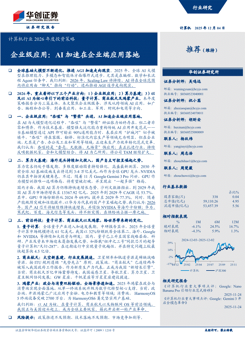 计算机行业:华创证券-计算机行业2026年度投资策略:企业级应用,AI加速在企业端应用落地-251204