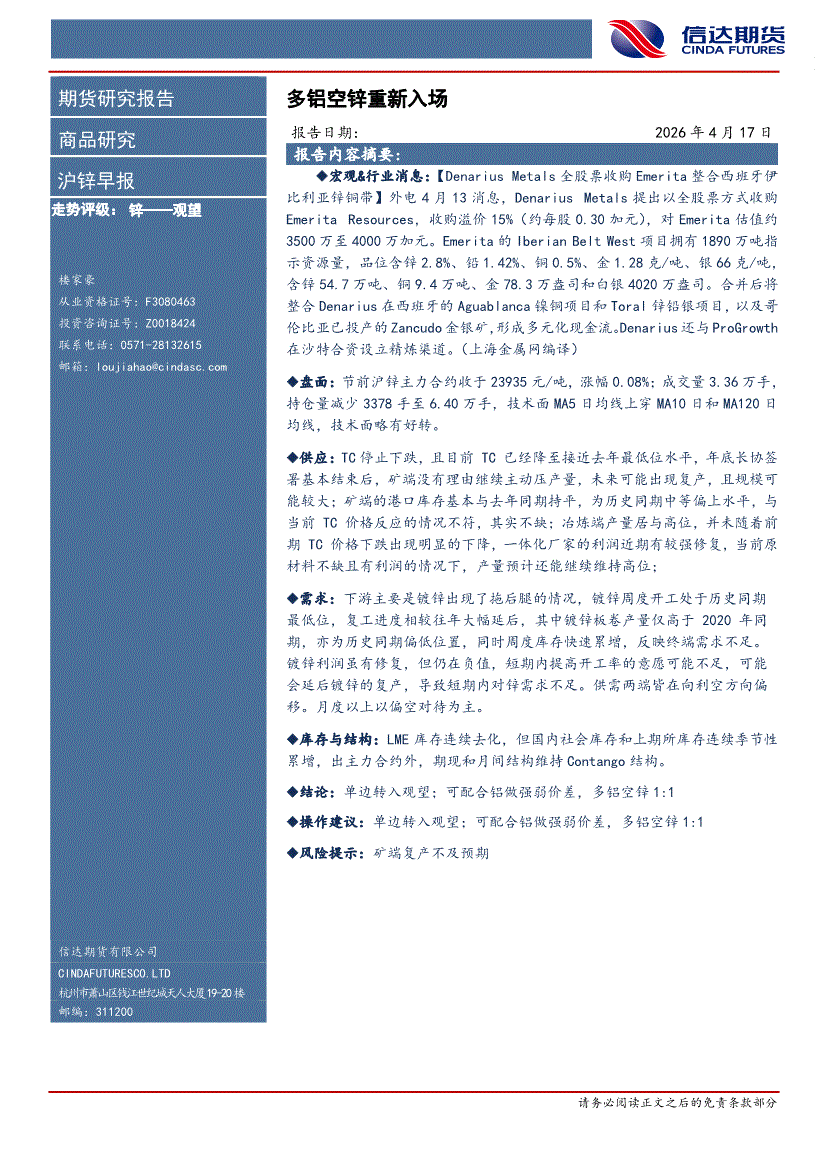 信达期货-沪锌早报:多铝空锌重新入场-260417