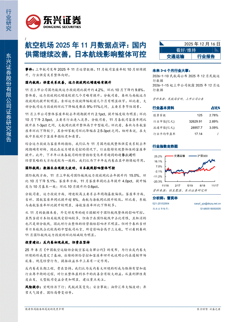东兴证券-交通运输行业航空机场2025年11月数据点评:国内供需继续改善,日本航线影响整体可控-251216