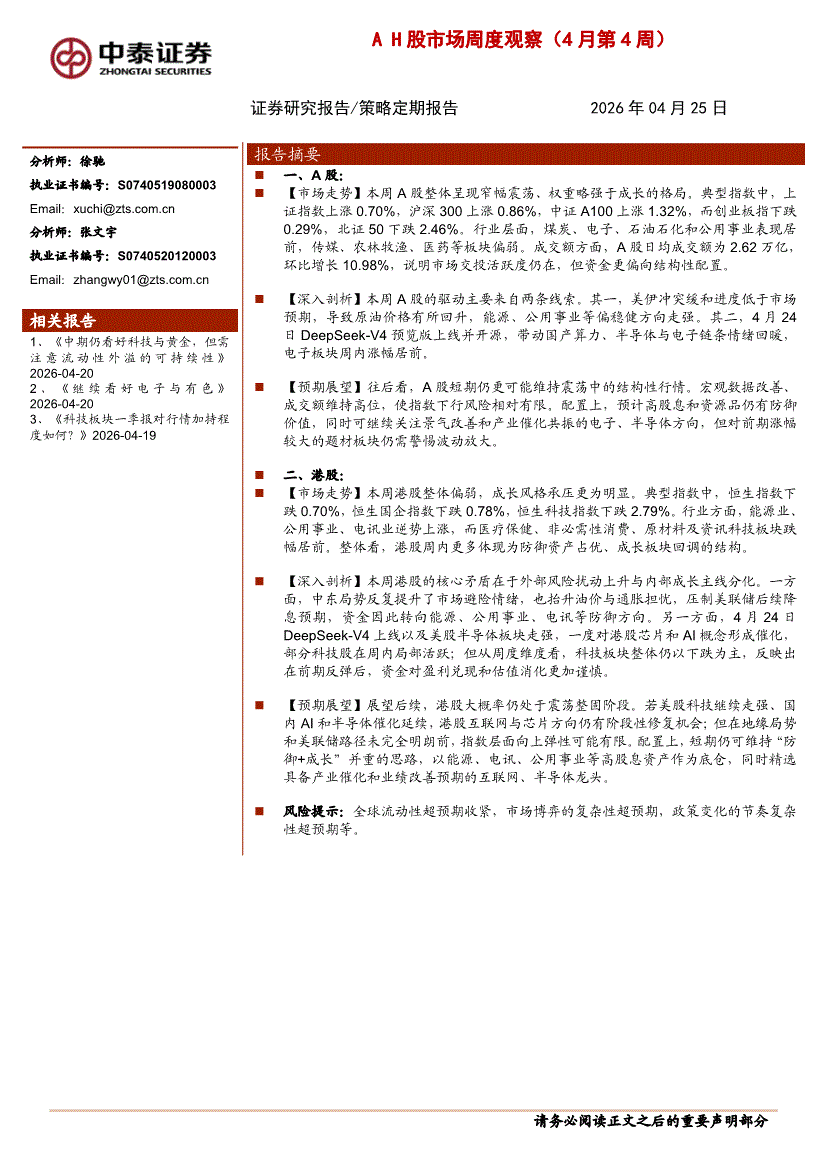 中泰证券-AH股市场周度观察(4月第4周)-260425