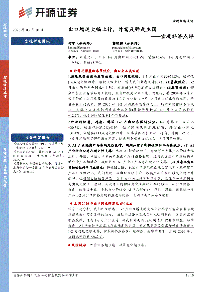 开源证券-宏观经济点评:出口增速大幅上行,外需反弹是主因-260310
