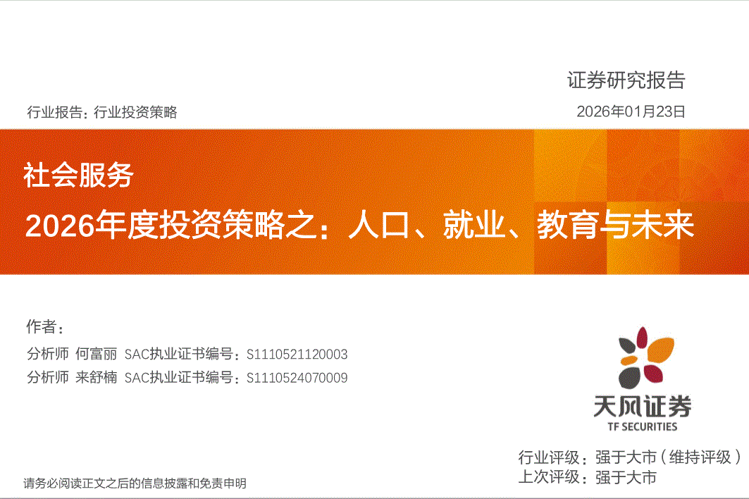 社会服务行业:天风证券-社会服务行业2026年度投资策略之:人口、就业、教育与未来-260123