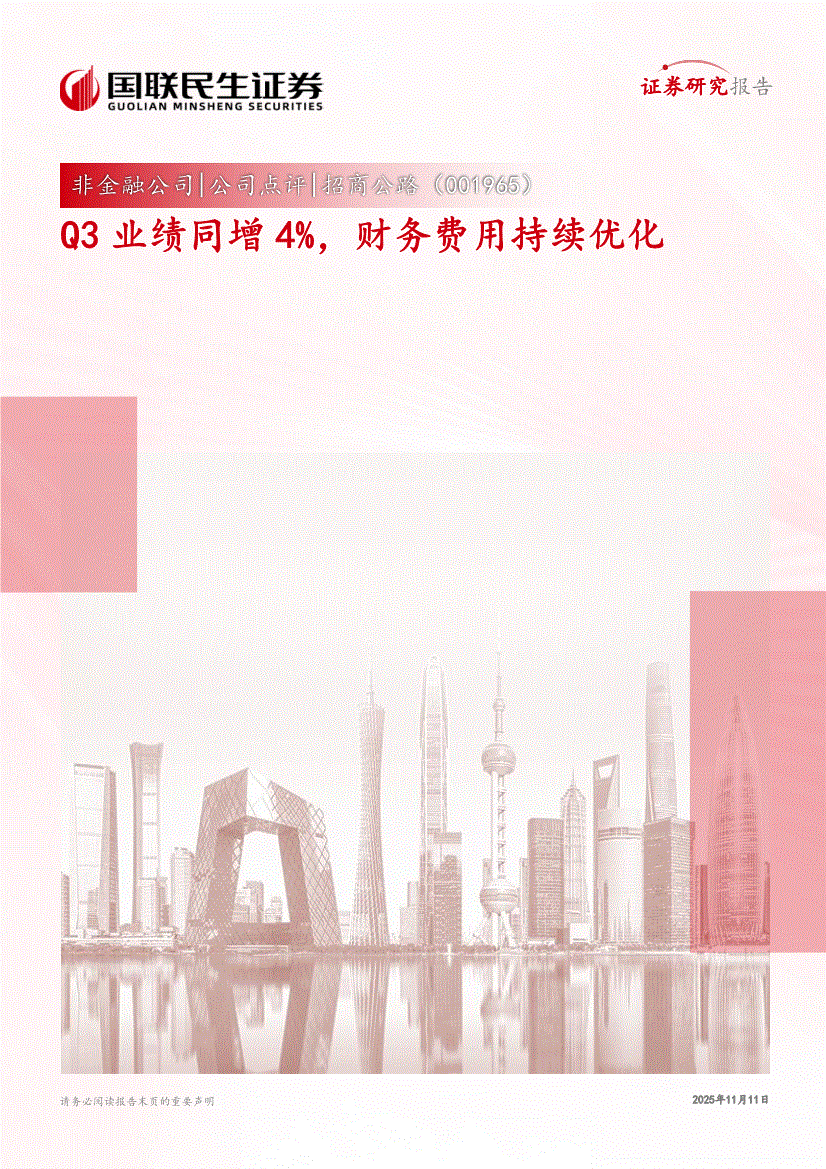招商公路:国联民生证券-招商公路-001965-Q3业绩同增4%,财务费用持续优化-251111