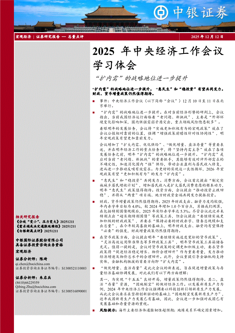 中银国际-2025年中央经济工作会议学习体会:“扩内需”的战略地位进一步提升-251212