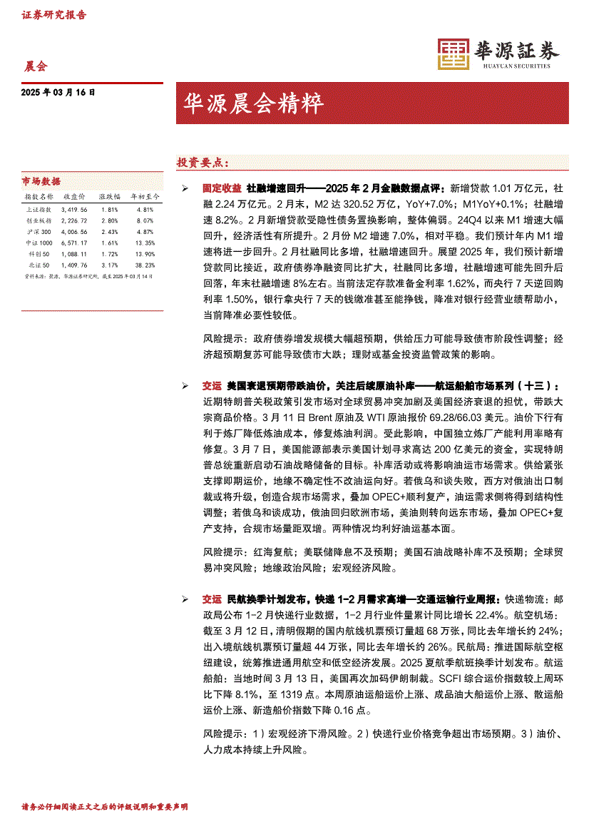 华源证券-晨会精粹-250316