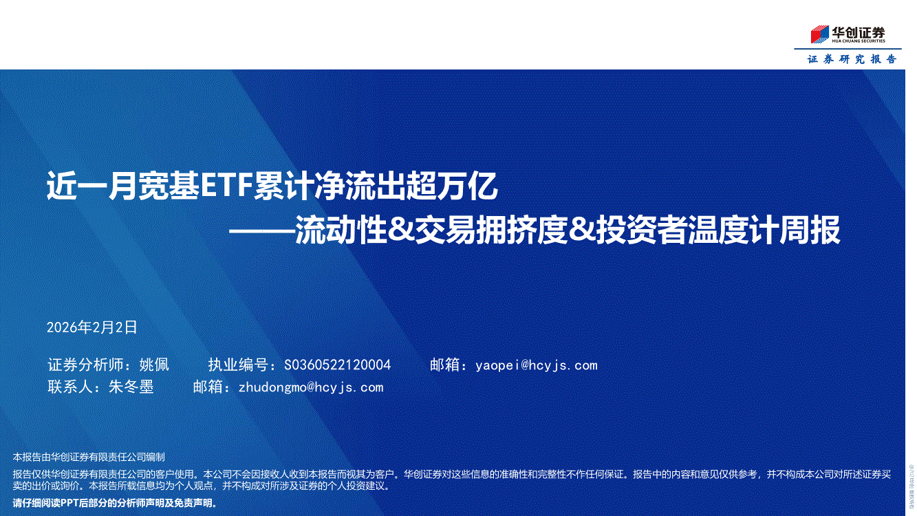 华创证券-流动性&交易拥挤度&投资者温度计周报:近一月宽基ETF累计净流出超万亿-260202