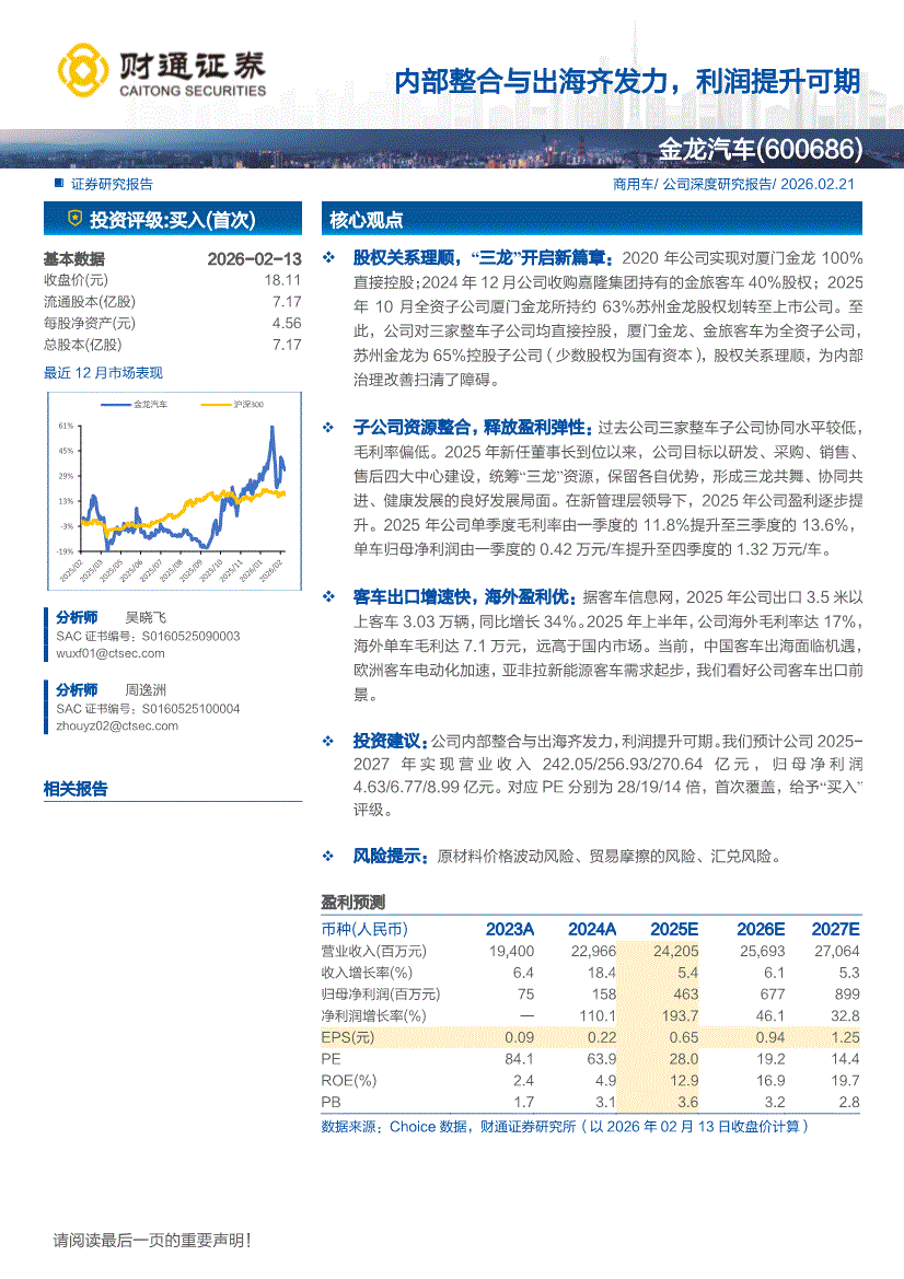 财通证券-金龙汽车-600686-内部整合与出海齐发力,利润提升可期-260221