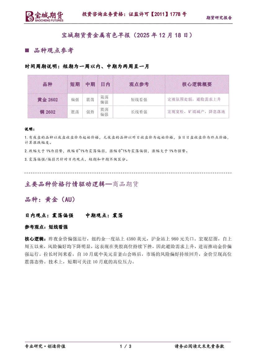 宝城期货-贵金属周报:短期避险需求上升-251215