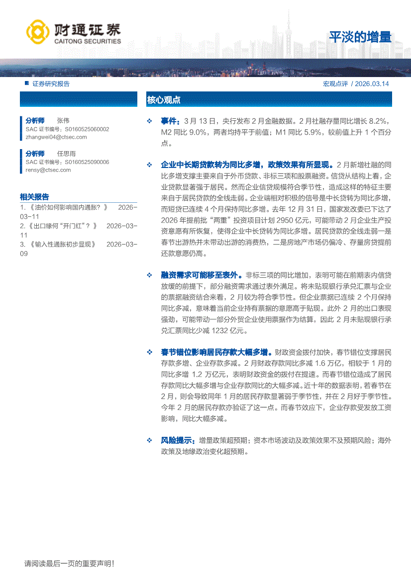 财通证券-宏观点评:平淡的增量-260314