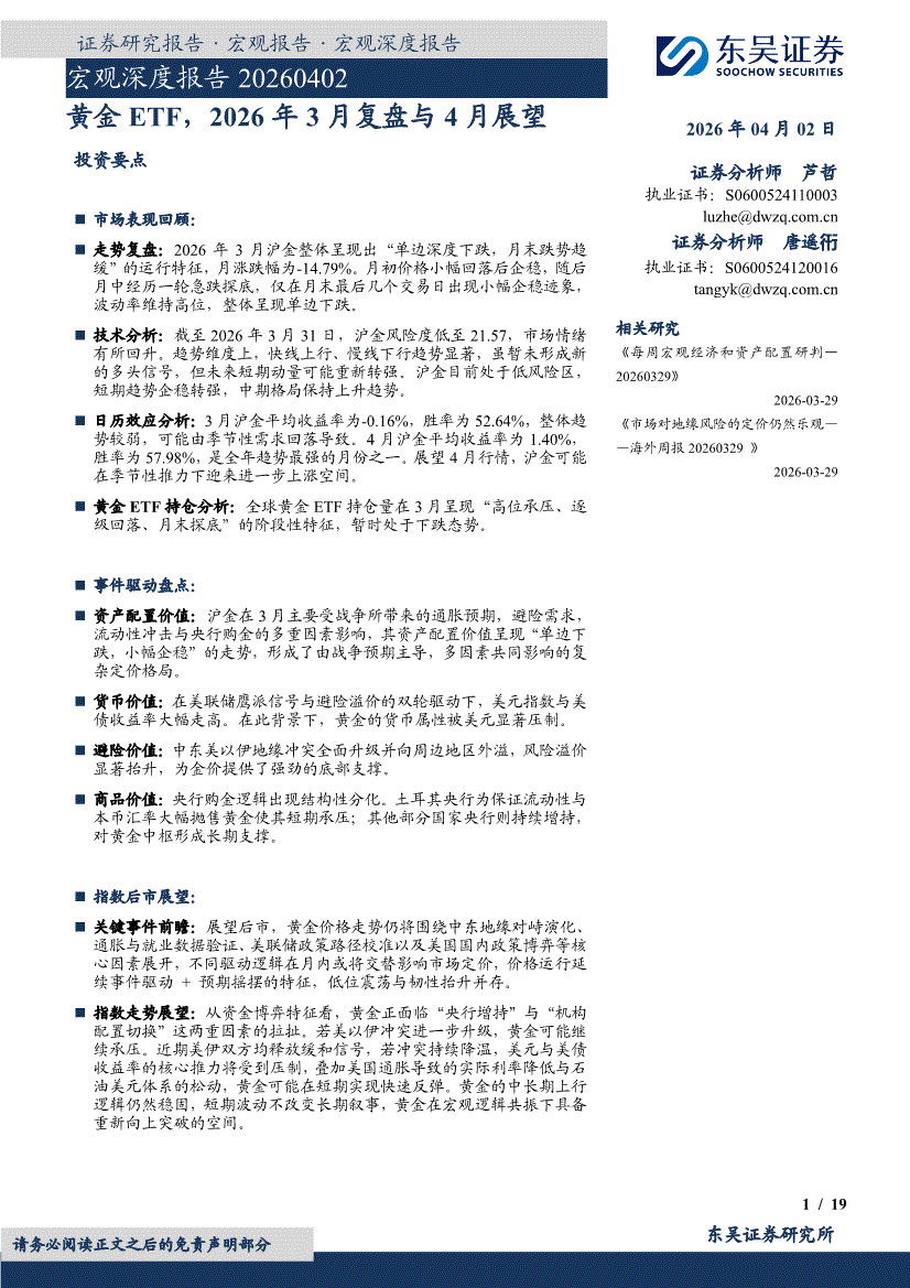 东吴证券-宏观深度报告:黄金ETF,2026年3月复盘与4月展望-260402