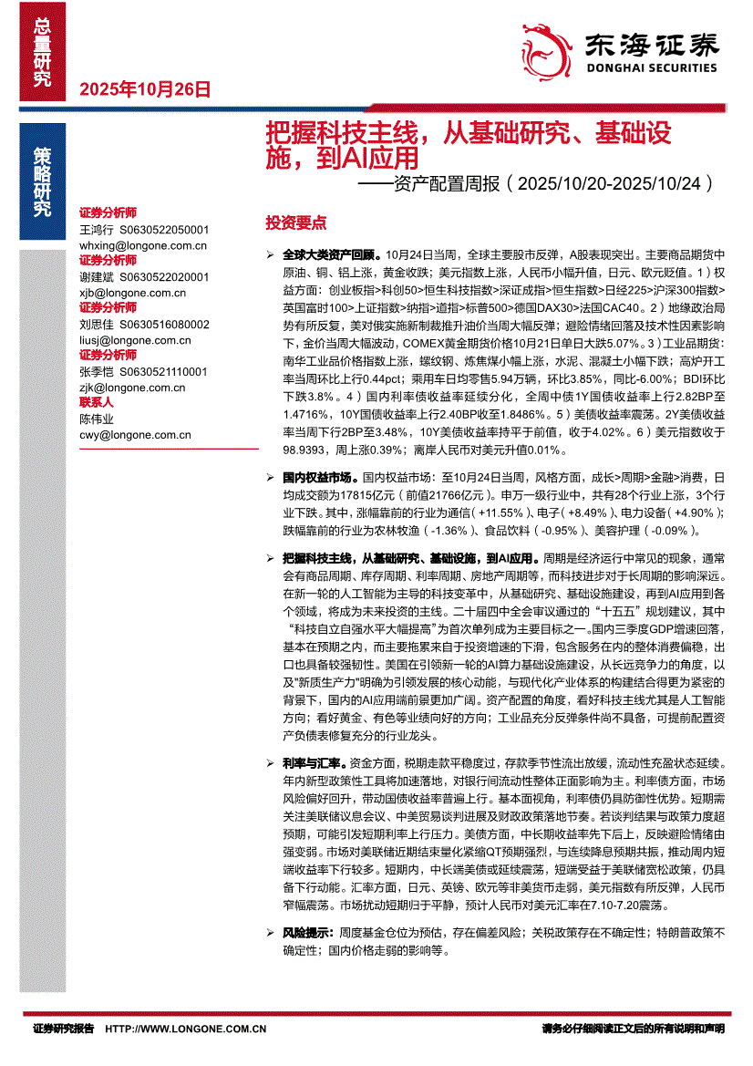 东海证券-资产配置周报:把握科技主线,从基础研究、基础设施,到AI应用-251026