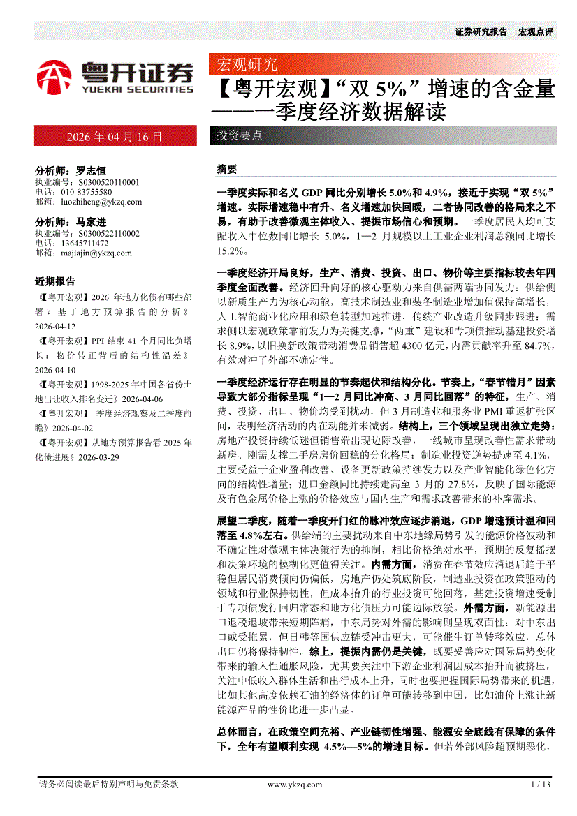 粤开证券-【粤开宏观】一季度经济数据解读:“双5%”增速的含金量-260416