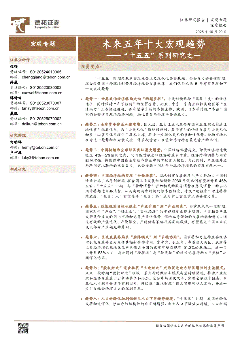 德邦证券-“十五五”系列研究之一:未来五年十大宏观趋势-251029