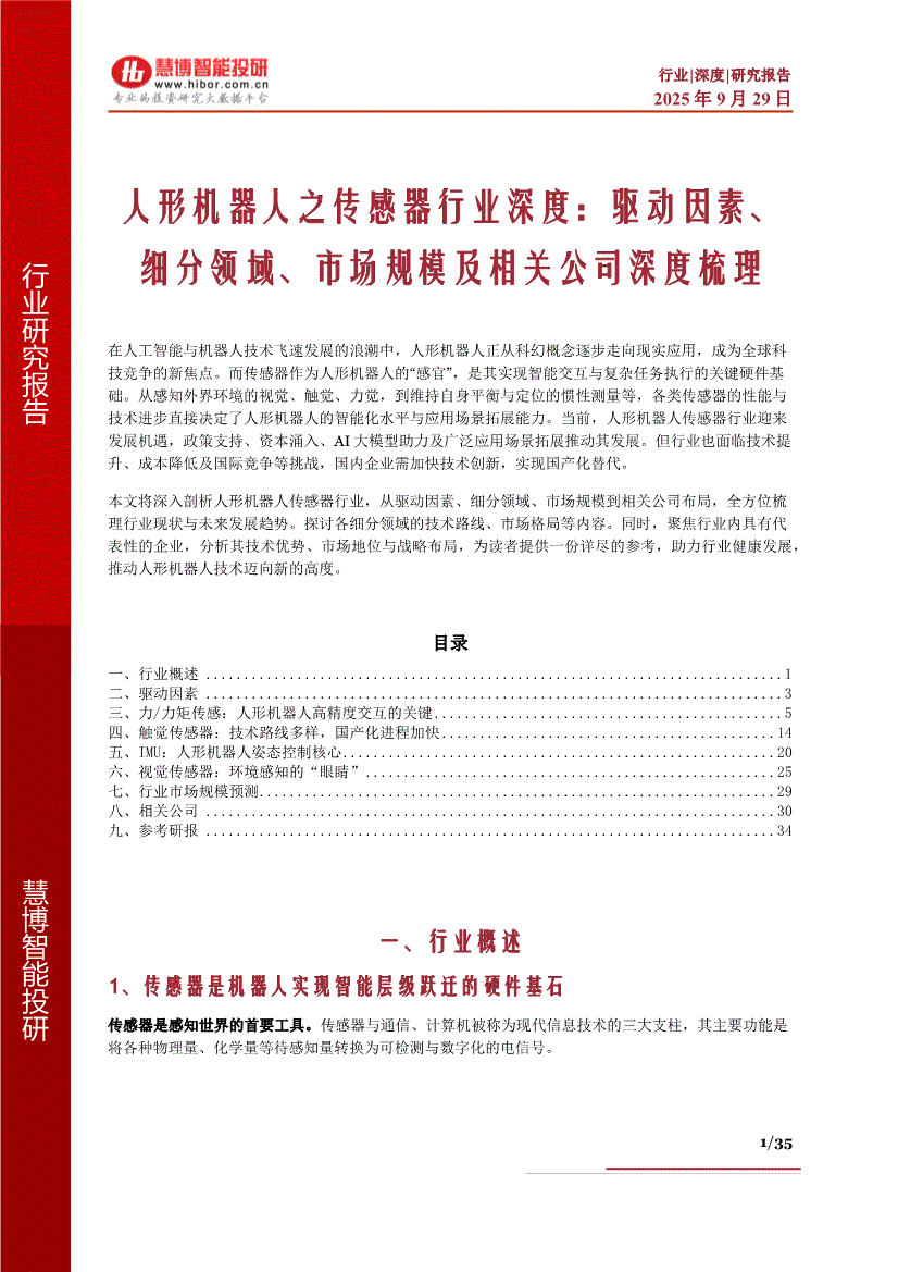 传感器行业:慧博智能投研-人形机器人之传感器行业深度:驱动因素、细分领域、市场规模及相关公司深度梳理-250929