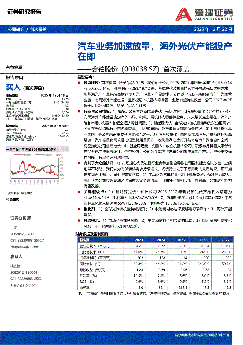 鑫铂股份:爱建证券-鑫铂股份-003038-首次覆盖:汽车业务加速放量,海外光伏产能投产在即-251222