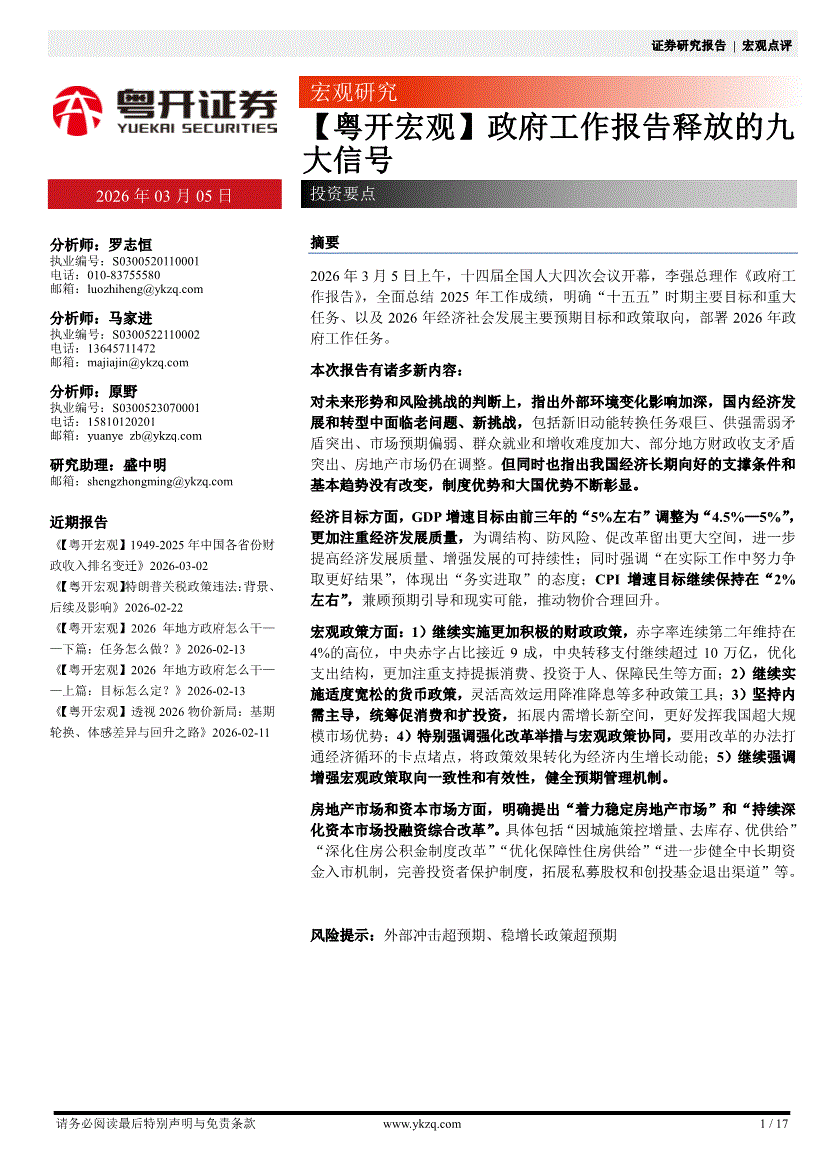粤开证券-【粤开宏观】政府工作报告释放的九大信号-260305