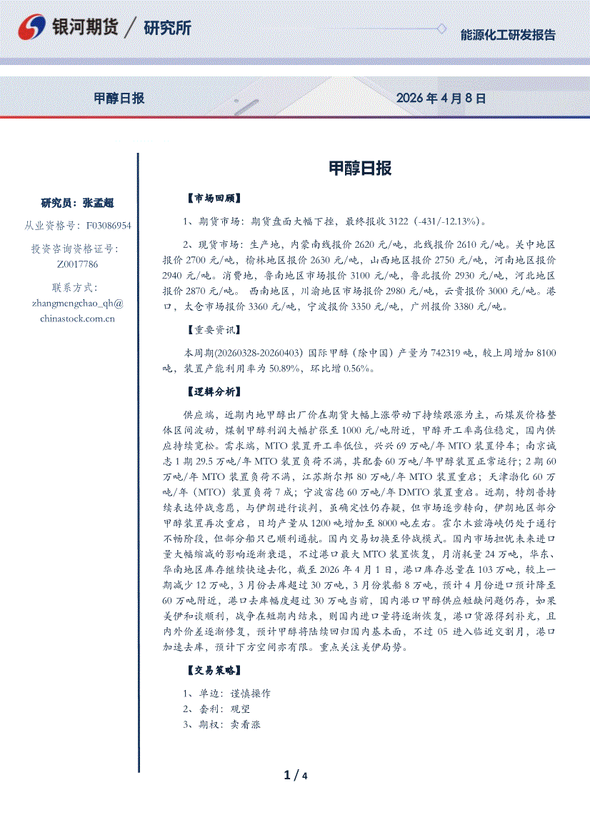 银河期货-甲醇日报-260408