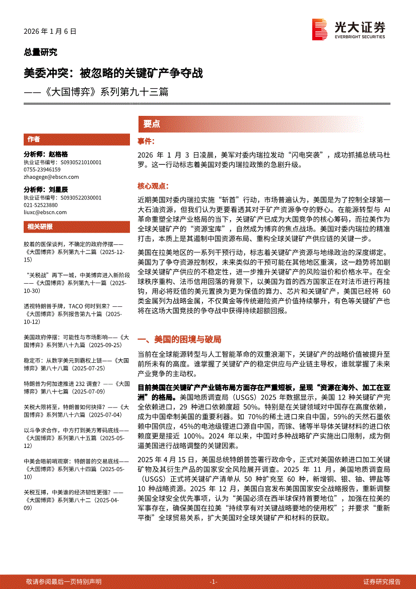 光大证券-《大国博弈》系列第九十三篇:美委冲突,被忽略的关键矿产争夺战-260106