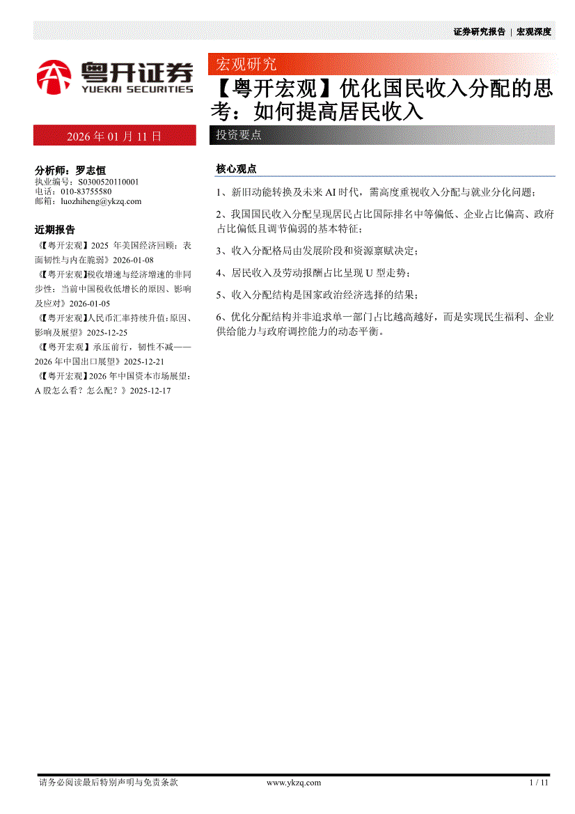 粤开证券-【粤开宏观】优化国民收入分配的思考:如何提高居民收入-260111