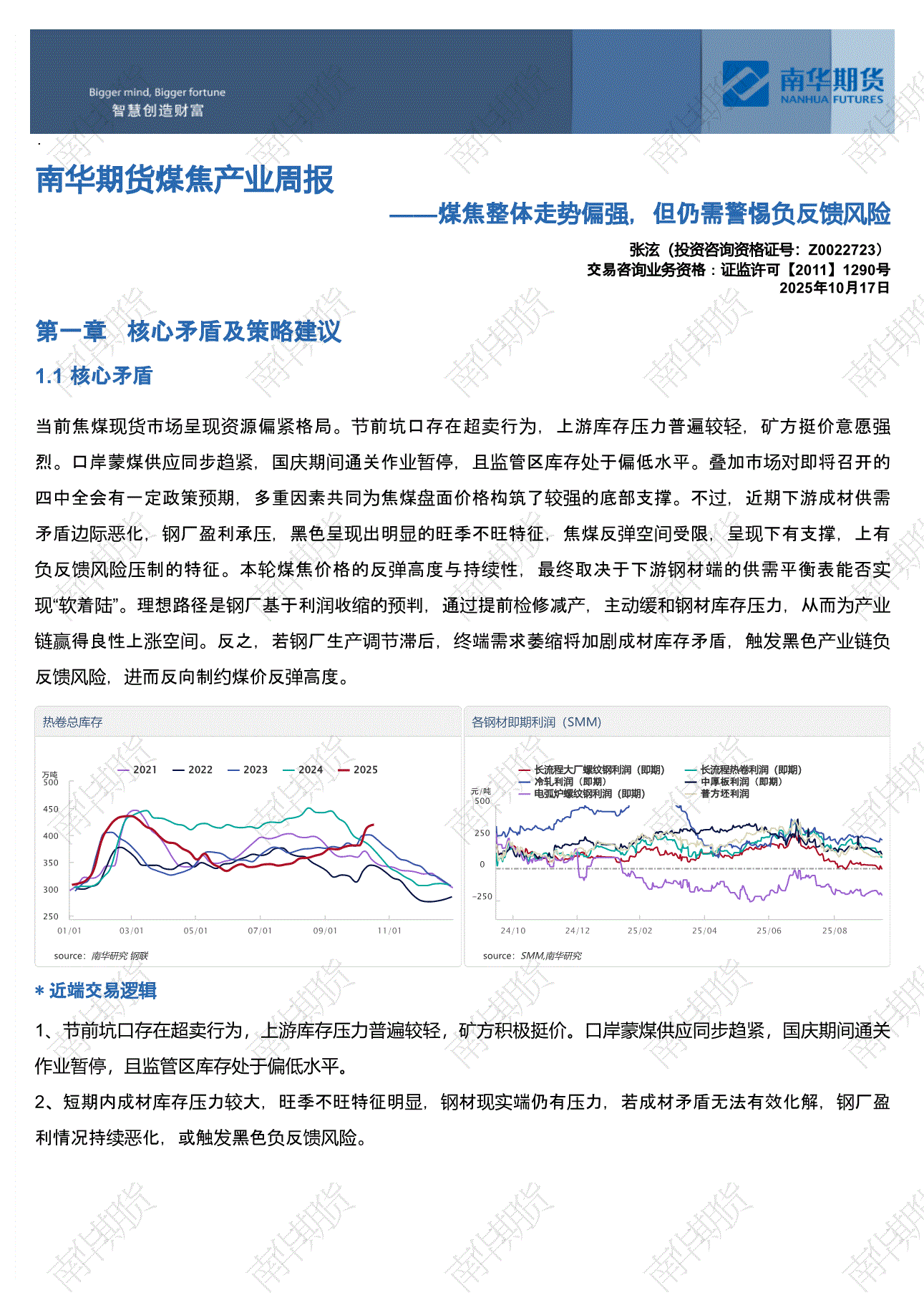 南华期货-煤焦产业周报:煤焦整体走势偏强,但仍需警惕负反馈风险-251017