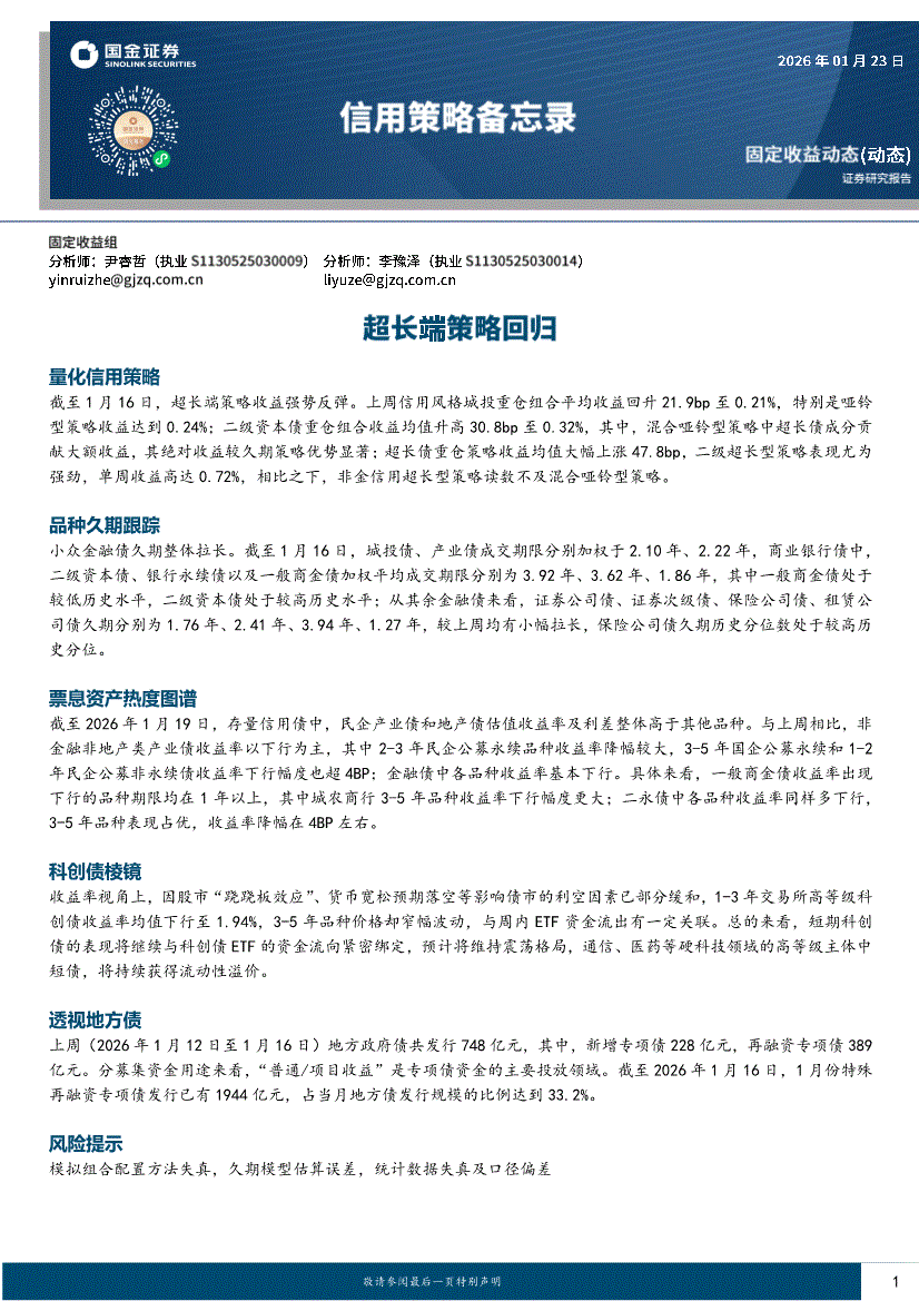 国金证券-信用策略备忘录:超长端策略回归-260123