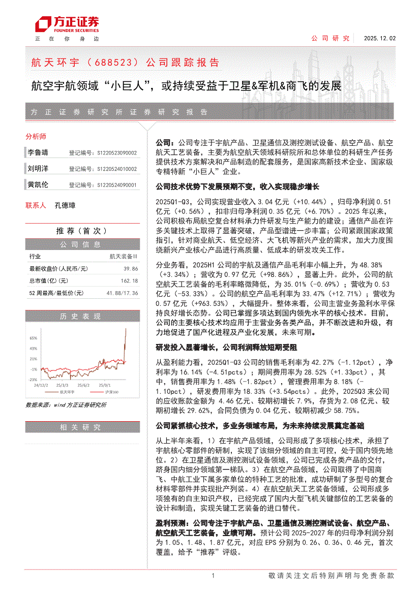 航天环宇:方正证券-航天环宇-688523-公司跟踪报告:航空宇航领域“小巨人”,或持续受益于卫星&军机&商飞的发展-251202