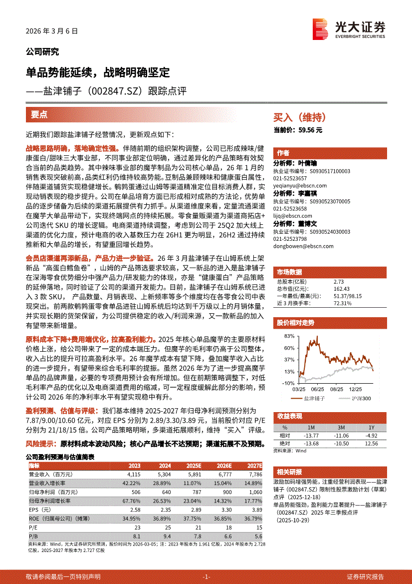 盐津铺子:光大证券-盐津铺子-002847-跟踪点评:单品势能延续,战略明确坚定-260306