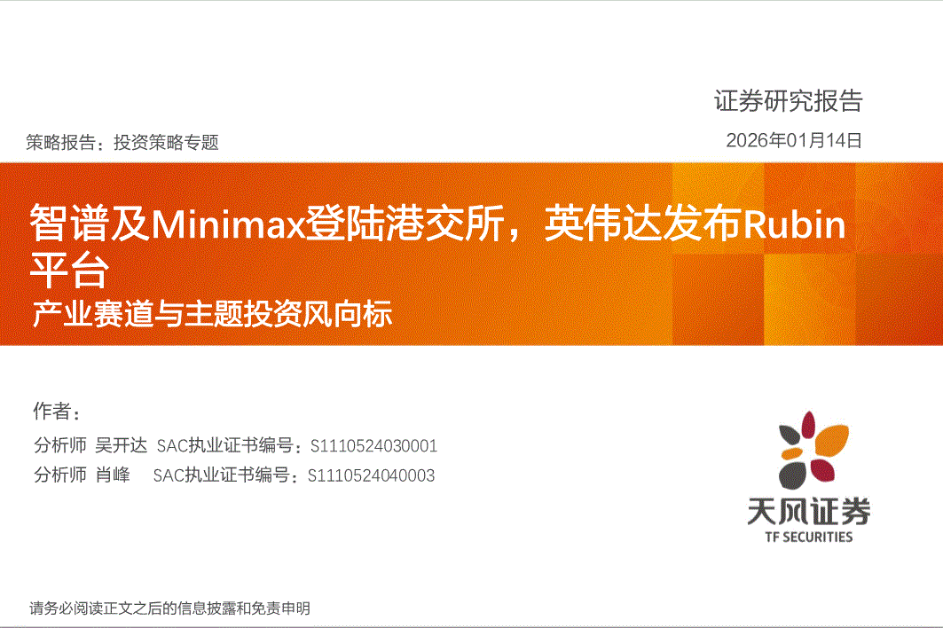 天风证券-产业赛道与主题投资风向标:智谱及Minimax登陆港交所,英伟达发布Rubin平台-260114