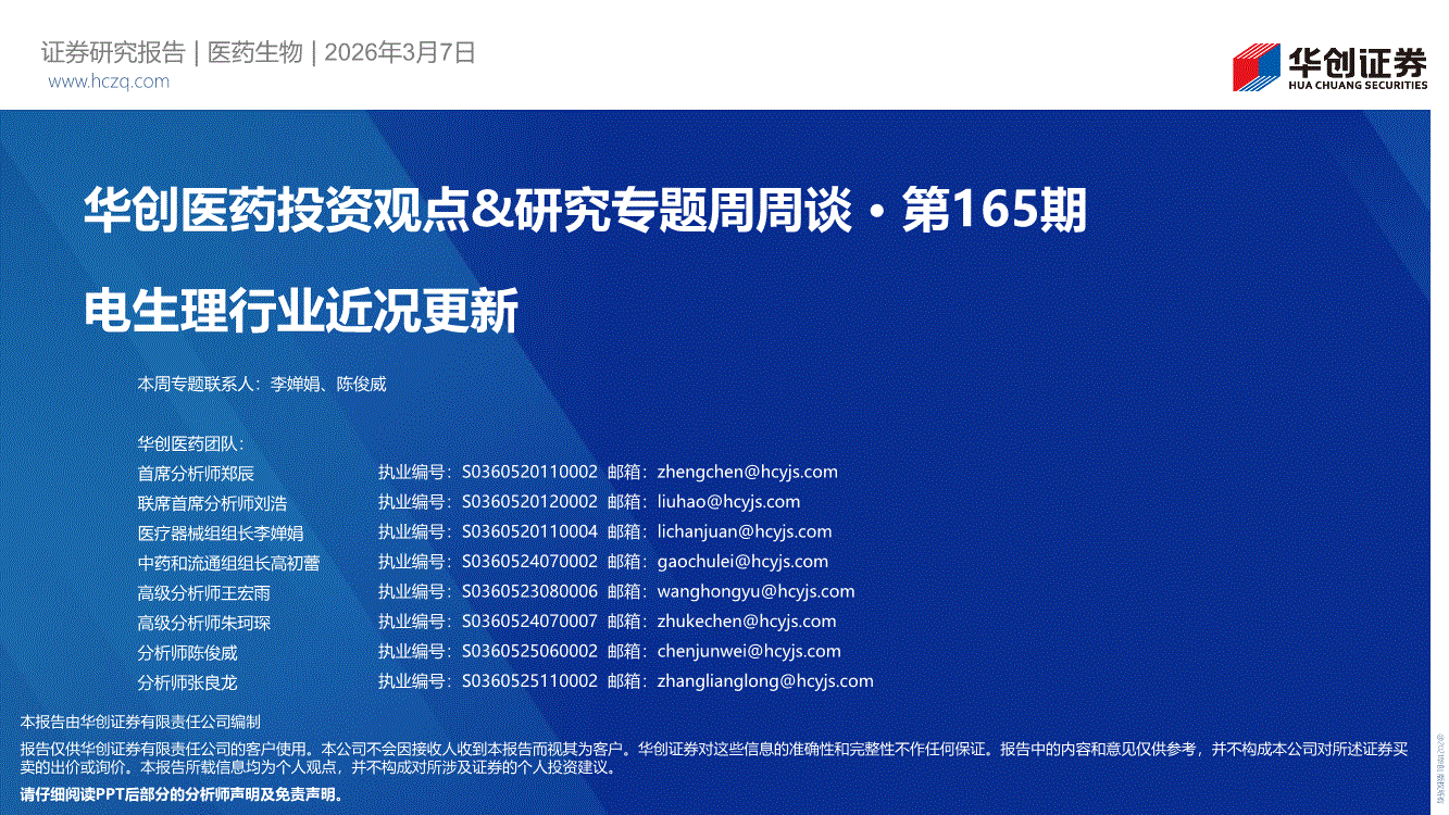 医药行业:华创证券-医药行业投资观点&研究专题周周谈·第165期:电生理行业近况更新-260307